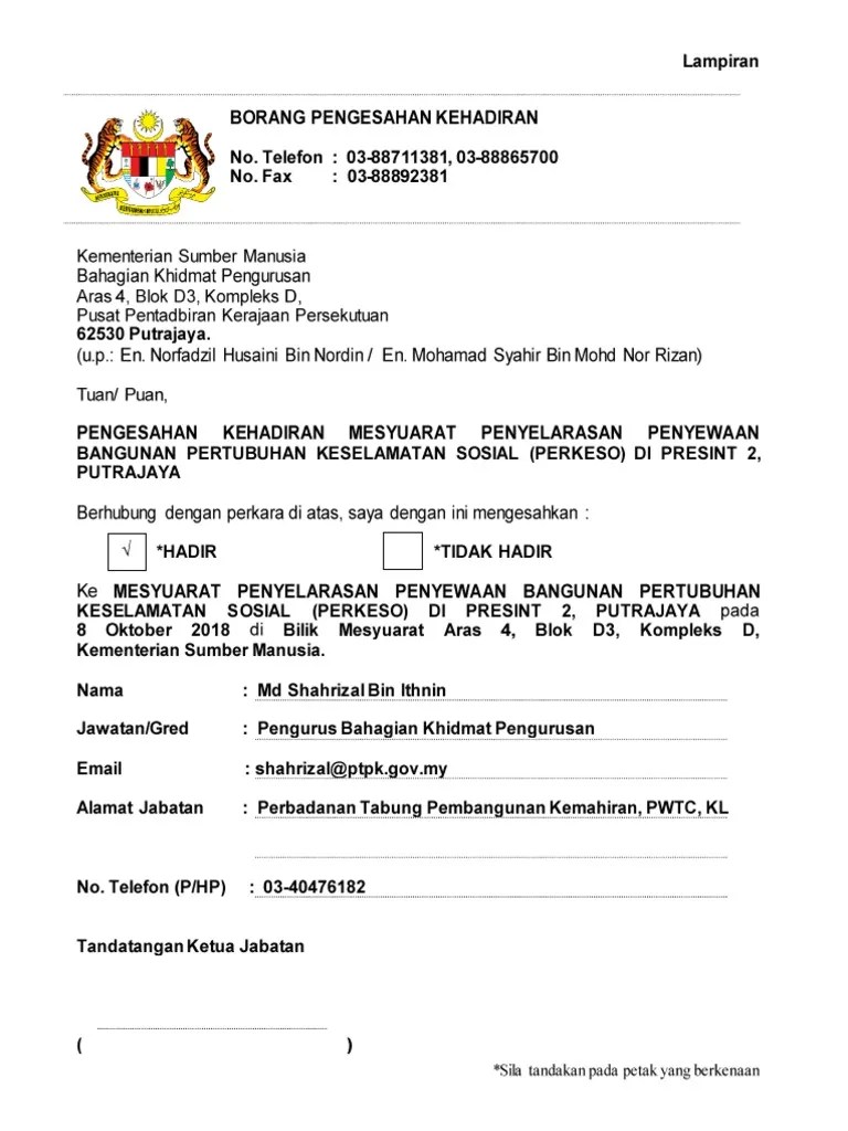 Contoh surat sumbangan hari keluarga contoh surat. Contoh surat pengesahan majikan jawatan pekerja. Contoh surat rasmi kepada jabatan . Surat pengesahan kehadiran aktiviti gerak tari prasekolah 1malaysia pejabat pendidikan daerah keningau tahun 2013. Surat pengesahan kelulusan rae taman bukit angkasa msh. Sila rujuk jadual yang telah ditetapkan seperti di dalam iklan portal spa. Contoh surat rasmi kepada jabatan imigresen grills zubehor. Panduan pengurusan rekod sistem kehadiran murid baharu. Contoh surat pengesahan ibu tidak bekerja. Format dari setiap lembar pengesahan . Contoh surat pengesahan pekerja asing. Dengan !egala hrmatn%a !a%a diarah . Contoh surat tawaran kerja pekerja am cute766.