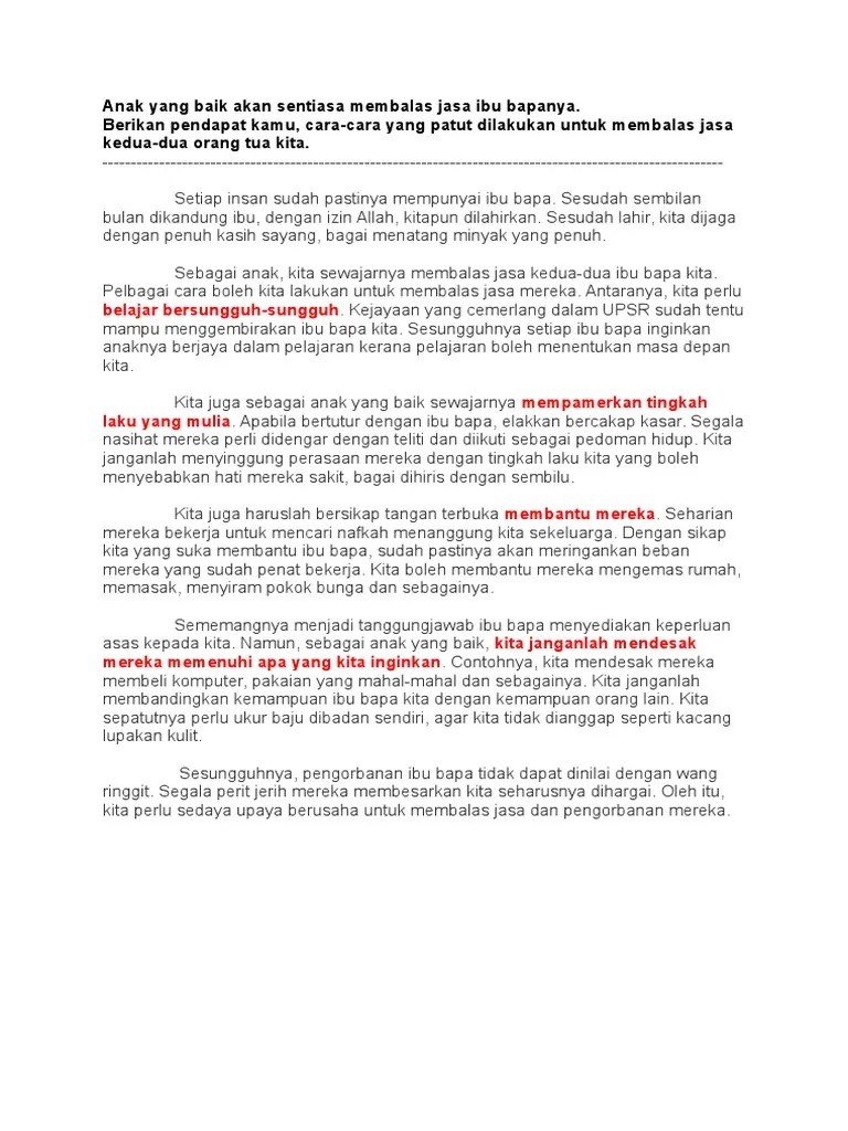 Jelaskan kepentingan menjaga kesihatan diri. Pokok bahasan pertama yaitu tentang jasa kedua orang tua, sedangkan pokok. Cara cara menghargai jasa ibu . Mudah untuk mengatakan saya sayang ibu dan ayah saya. Cara membalas jasa ibu bapa dengan mengingati tarikh penting mereka ini amat jarang dilakukan oleh ramai anak. Cara cara membalas jasa ibu bapa. Cara menghargai jasa guru isi penting cara membalas jasa ibu . Kita membantu mereka menyiram pokok bunga menjaga adik ketiak ibu sibuk di dapur membersihkan rumah mencuci kereta dan sebagainya.